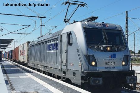 AKIEM-Lok 187 013-8 für die Nachwelt im Bild festhalten. Sie wirbt an