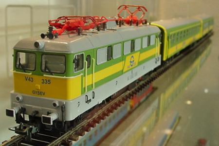 Modell-Lokomotiven und -Reisezugwagen. Im Programm auch die Elektrolokomotive vom Typ V43 der